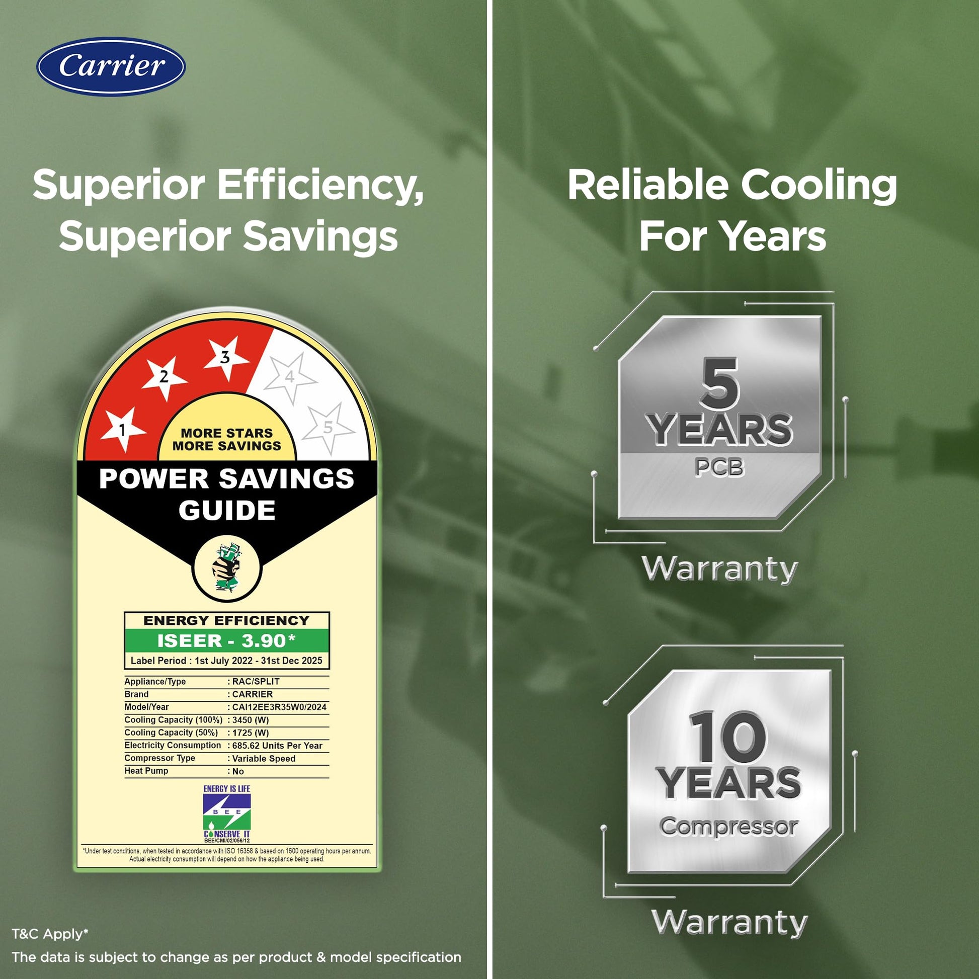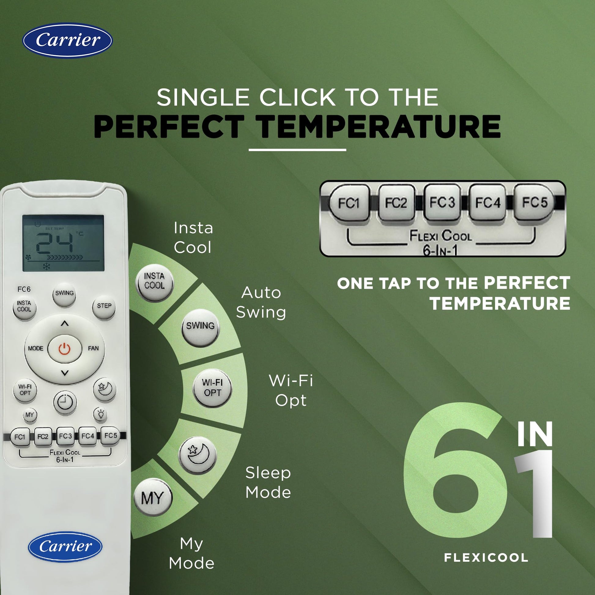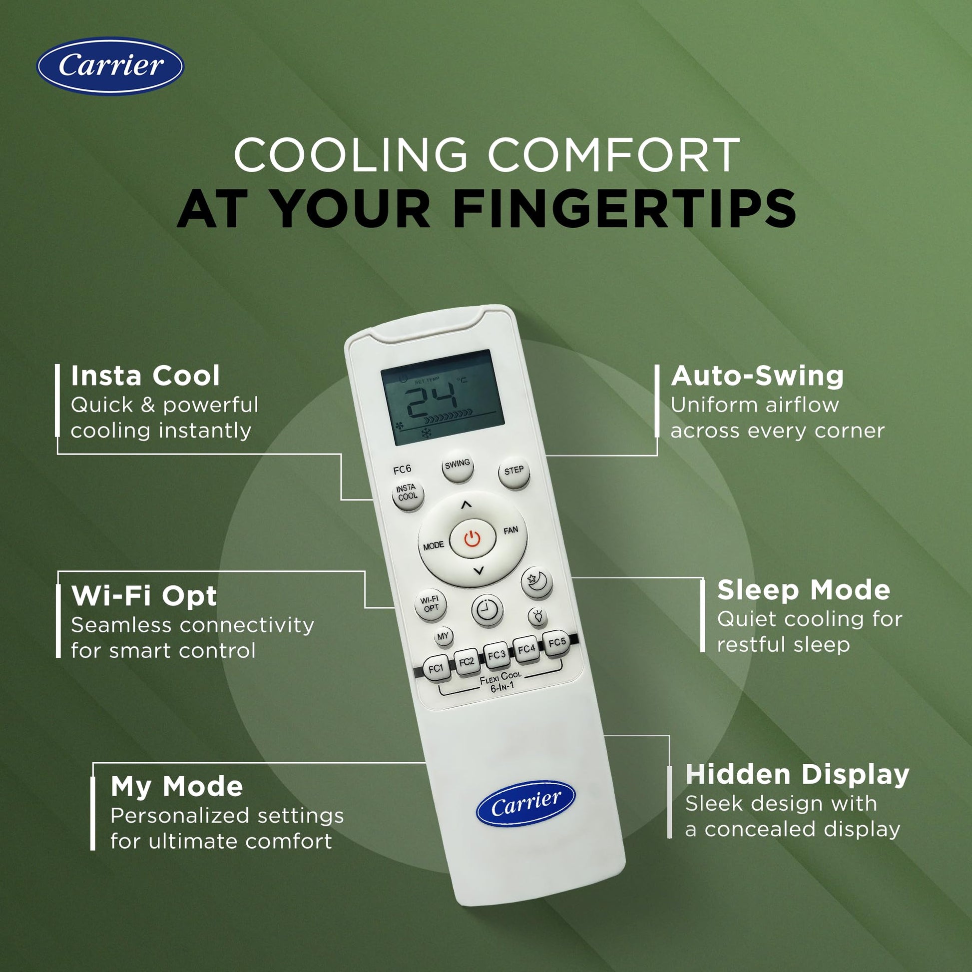 Carrier 1 Ton 3 Star Wi-Fi Inverter Split AC (Convertible 6-in-1 Cooling, Smart Display, PM 2.5 Filter, Wi-Fi, White)